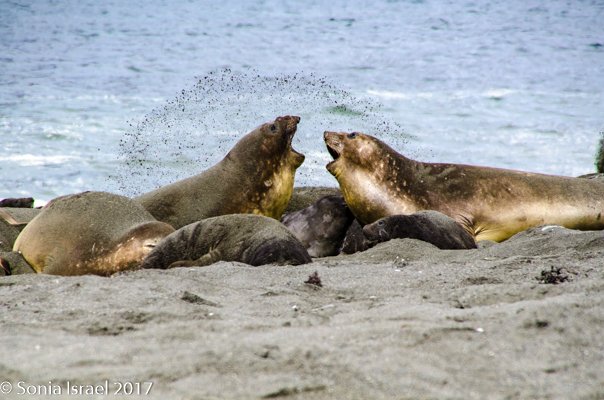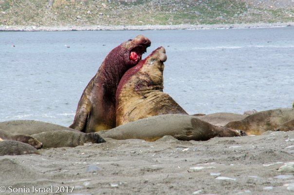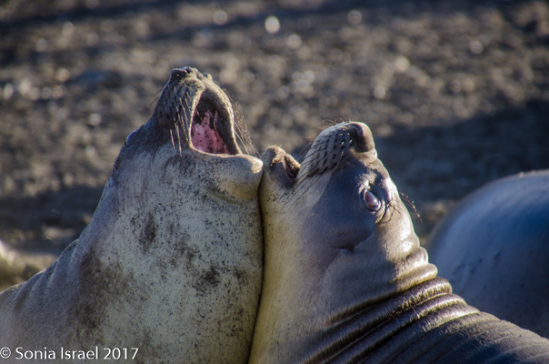 But other elephant seals were much more active. We saw more and more alpha seals fighting the beta seals to keep them away from the females. One pair fought each other for almost 30 minutes, bellowing, with blood pouring out of their skin. Eventually, one of them slinked off, but the alpha followed him to be sure he would not come back.