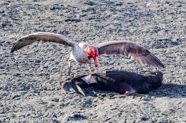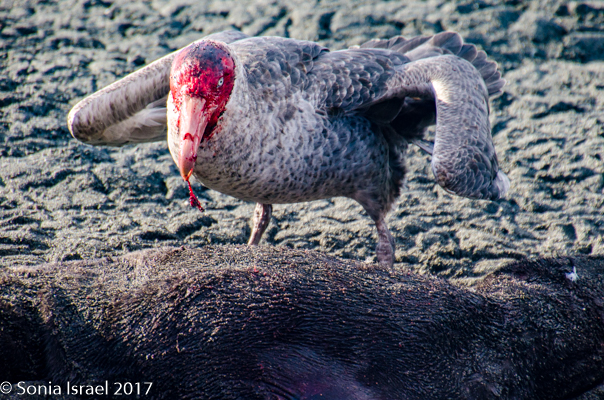 There were a few seal pups that had not survived and the giant petrels were feasting. One petral had a face covered in blood as it kept digging into the pup and pulling out strips of food. The circle of life.