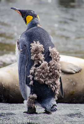 Some of the penguins were molting and looked like they were wearing a fur coat.
