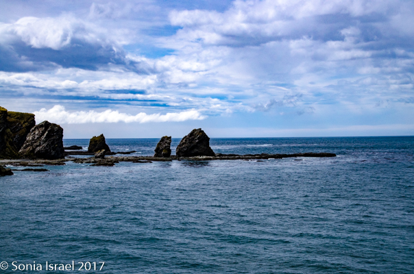 We were called to the mud room, one group at a time as usual, we donned our muck boots and out we went again. We were warned that this beach is known for large swells so there was a good chance we would get wet. Cameras were placed in plastic bags and off we went.