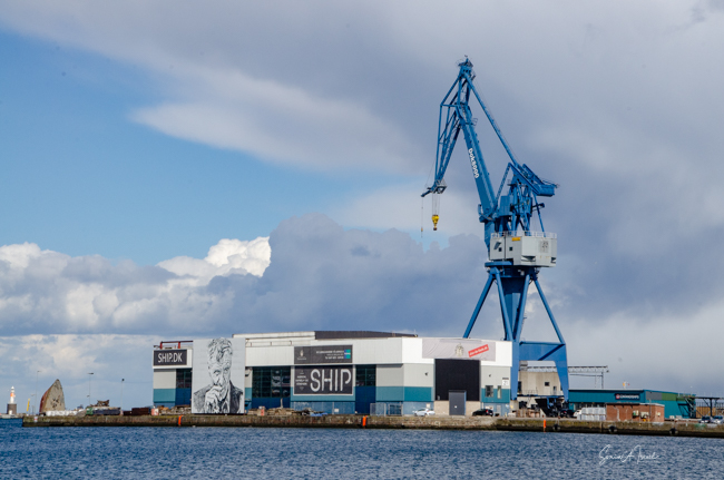 This large copper-bronze and stainless-steel monument, designed by Jens Galschiot, represents the manual labor of the dock workers, once a typical sight at the Aarhus harbor. It represents 7 workers loading and unloading coffee. As with many things, there is a back story. The dockworkers, both those retired and those still working, would meet at the worker’s Welfare House which was right there on the inner harbor, where I was walking. Here they would exchange stories and just hang out with each other.  I would not be surprised if beer or whiskey was involved. They would watch the harbor slowly change to one of tourism, residences, and modern coffee cafes. And so this group of dockworkers decided they wanted to have a way to mark and remember the hard work of their predecessors, the dockworkers who loaded and unloaded the many ships that came to the Aarhus harbor.