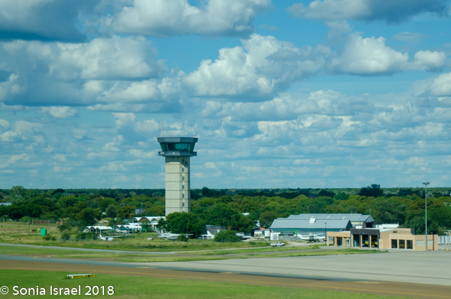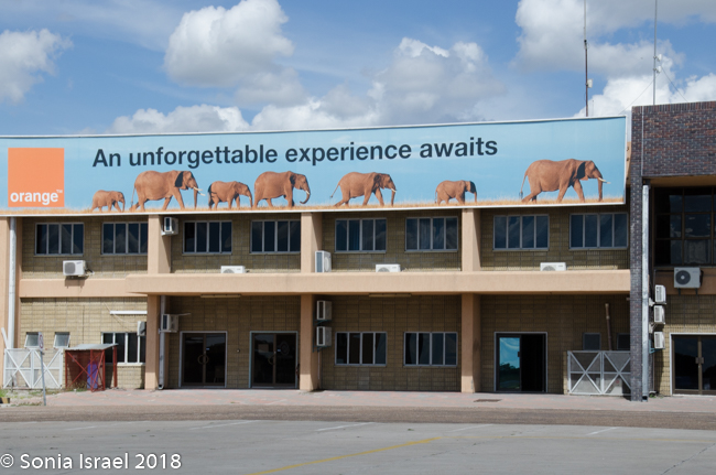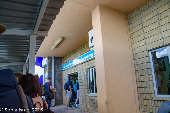 We landed 1.5 hours later in Maun, Botswana. We walked off the plane, down a narrow set of stairs onto the tarmac and then into a covered, outdoor area where all the passengers were waiting. A representative from the airline was handing out landing slips for us to fill out. I have no idea why they couldn’t do that on the plane the way every other airline does it. But no, we all stood around, trying to fill out our forms with nowhere to sit down and nothing to lean on.