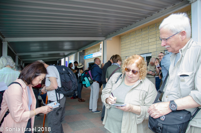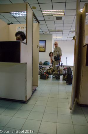The line to go into the building and through immigration was long and slow. Turns out they had one window for visitors and one for residents, of which there were only three. Eventually the officer (they were all women) took some of us to her window. By the time we got our passports stamped, all our bags were in the luggage room on the floor, waiting for us to pick up.