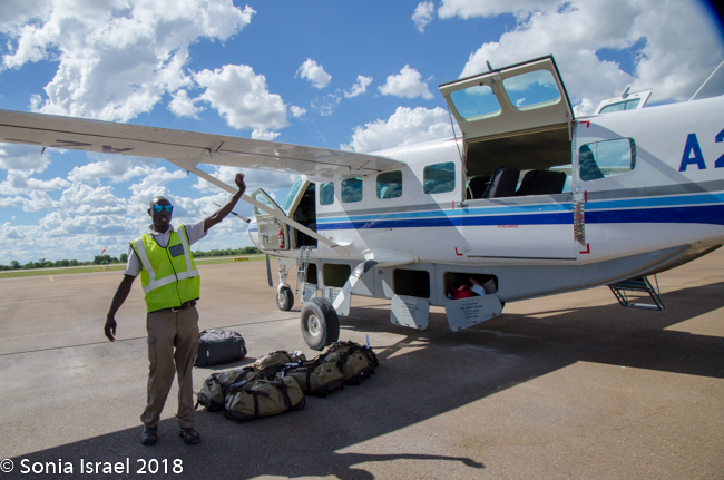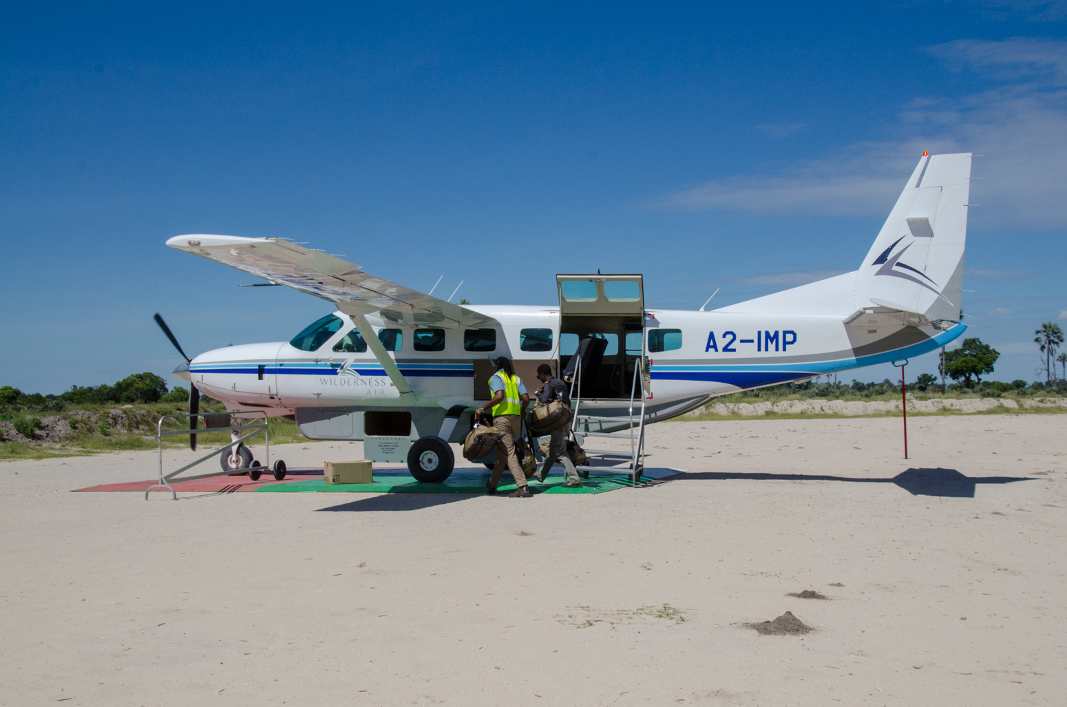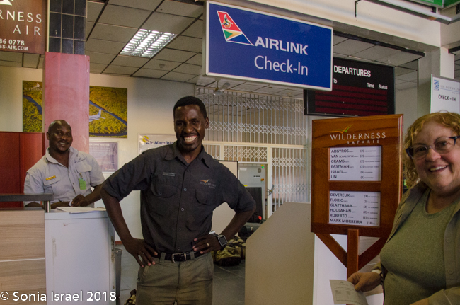 We had another representative from Wilderness Safari waiting for us on the other side of customs. He took our bags and checked them right back in again for our next flight to Xigera, our first camp. We were led to a golf cart which took us past small plane after small plane until we saw one with our six bags sitting on the ground near it.