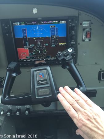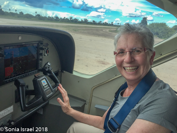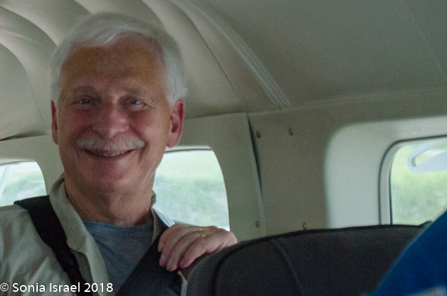 The plane made two stops, each 15 minutes apart, at two other lodges. On our second stop, we picked up a few more people, and since we were now running out of seats, one of the men sat up front with the pilot. Now that I realized that was an option, at the next stop, when they left, I moved up there. Now I could see out the front of the plane as well as the side.