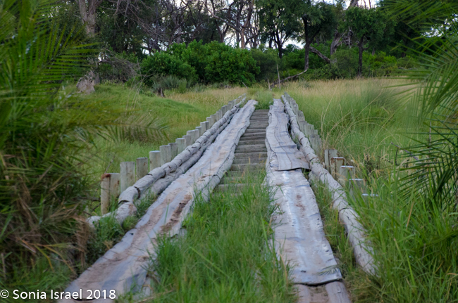 On the way to the camp, we saw our first warthog (first of what would be many) and birds of all sorts (also of what would be many). The way in and out of the camp always took us across a log bridge. Good thing we totally trusted Kitso.