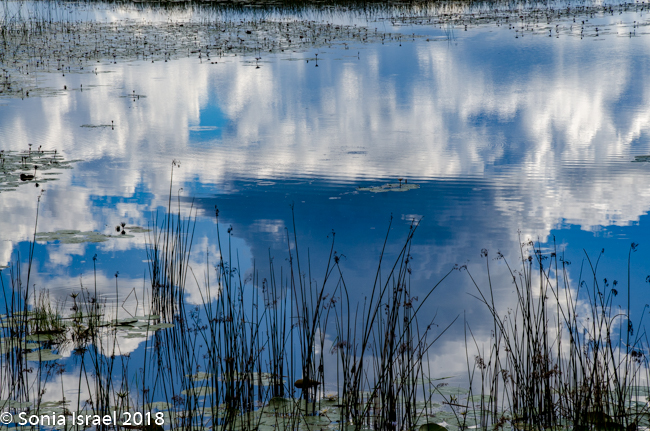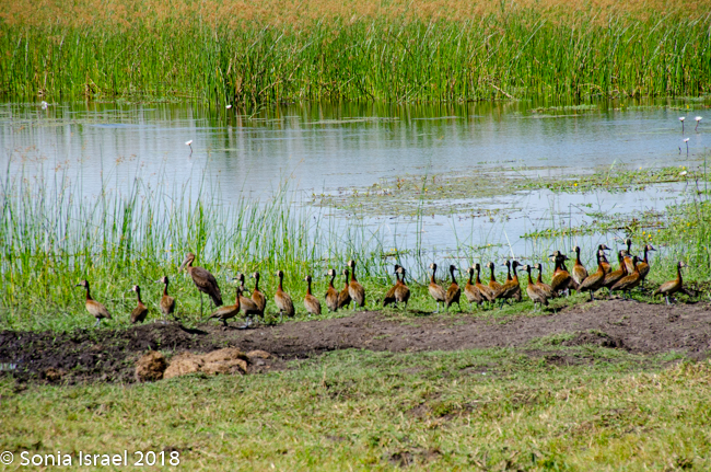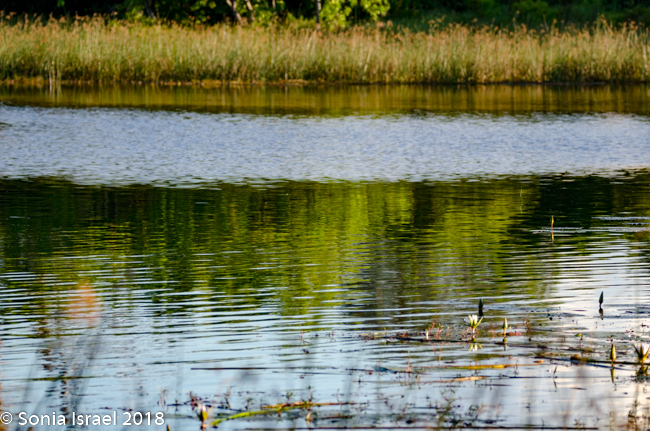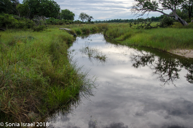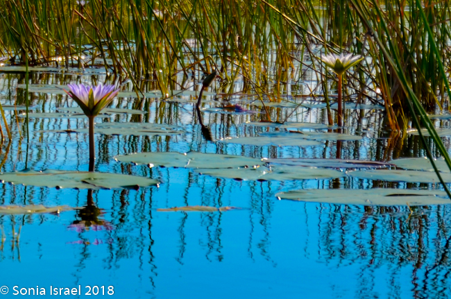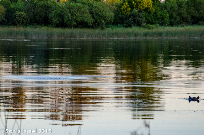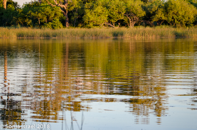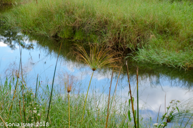 The water holes are like mirrors or like art. The begin to ripple as the hippos go up and down, or as the birds skim the tops as they take off into flight. This is Africa.