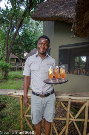 We were once again greeted with a song, wet, cool towels and a cold drink. We were introduced to the staff, Megan, Sean, Sally, Naledi, Moss and Jackie. But as before, the first thing was to get another orientation (just like the first with the most important part – never walk alone after dark) and check into our rooms.