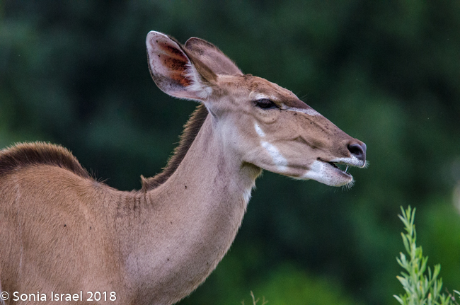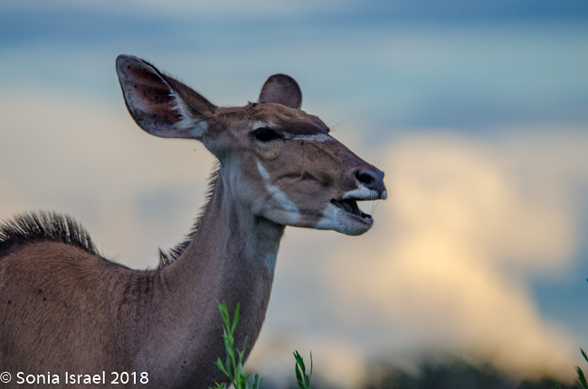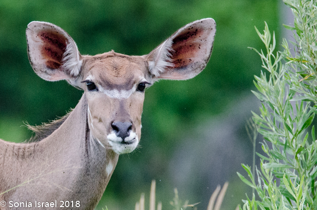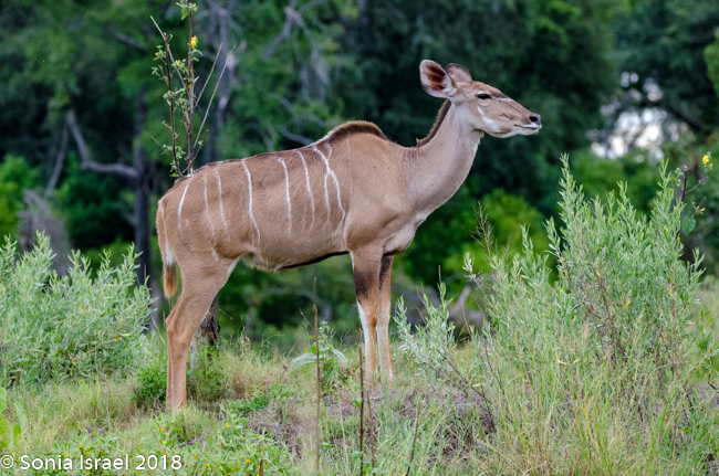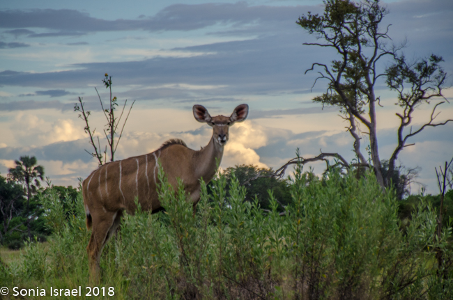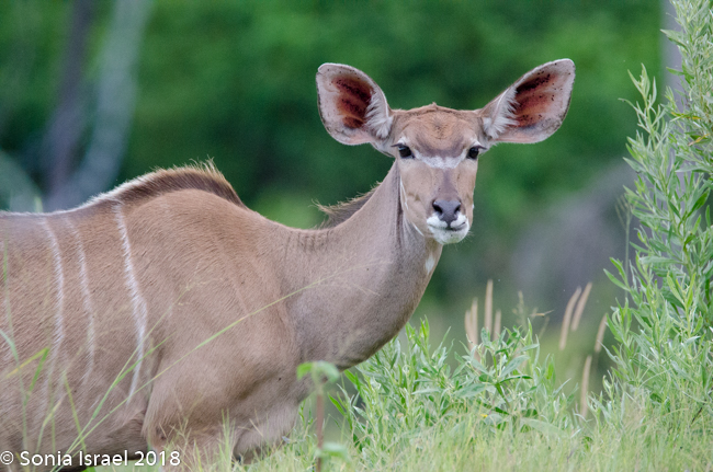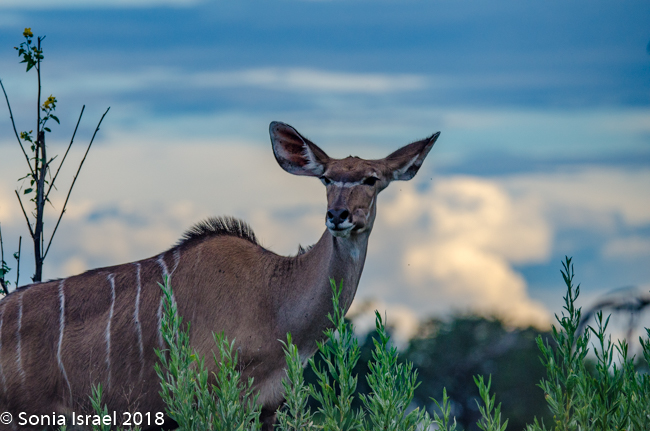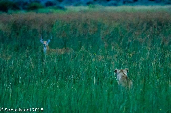 And later, when we downloaded our pictures and had a chance to review them, we discovered what she had really been stalking. It wasn’t the elephants, although she did make them nervous. In the tall grass stood a kudu looking right at the lioness. They saw each other, but for some reason, the lioness did not strike and the kudu got away. Kudu 1, Lioness 0.