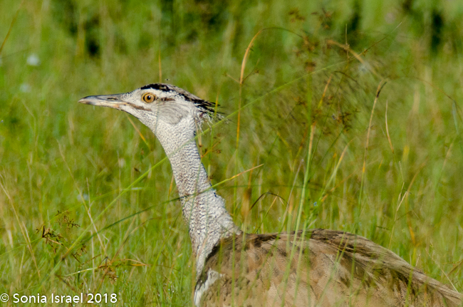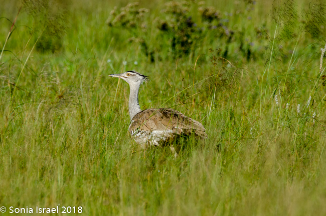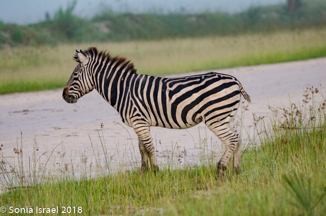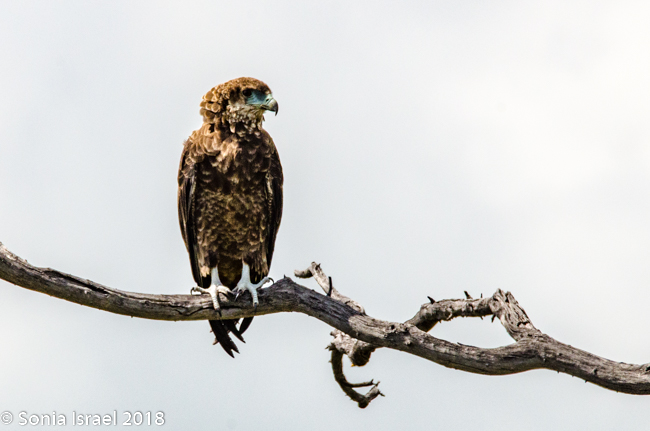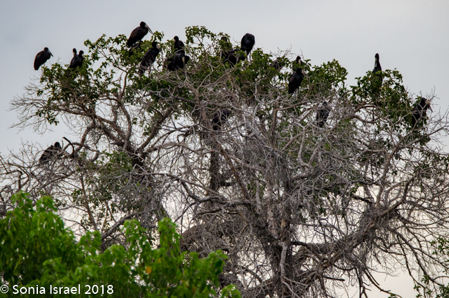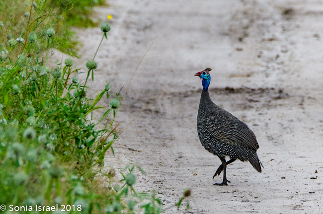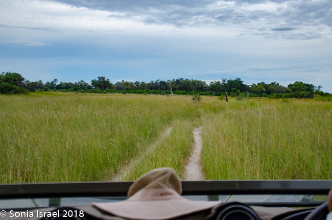 Finally we had our tea and climbed back into the Land Rover, cameras and hats and plastic bags for the cameras as rain was expected. We started what would be an almost two-hour drive, in part because we kept stopping to look at the animals and birds. This area is full of water holes, so we stopped to check out what was living there. At one we saw the top of a crocodile’s head. At another the top of two hippo heads; but Goodman said we would see plenty more hippos tomorrow and we had to keep going to get to the lions.