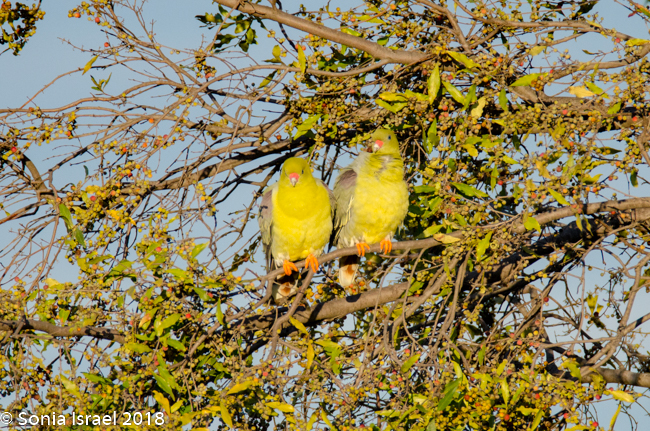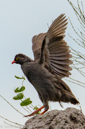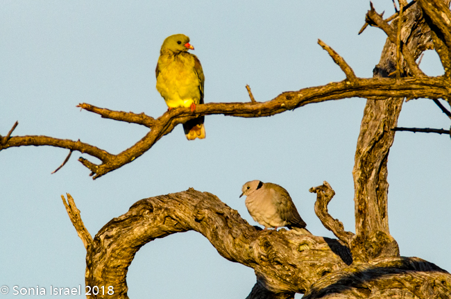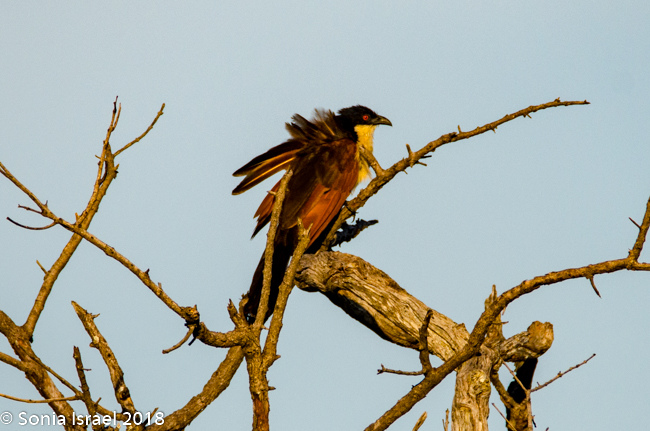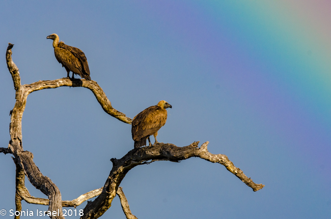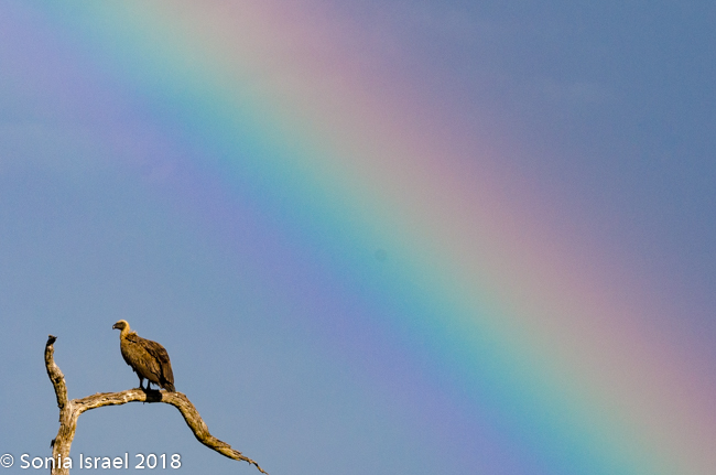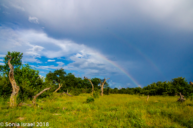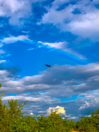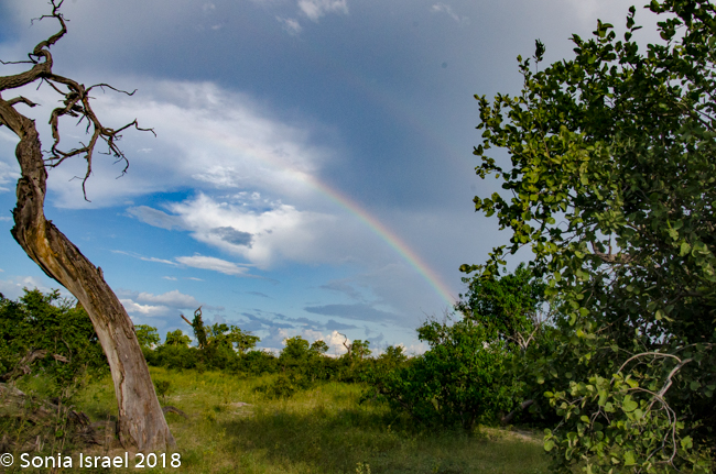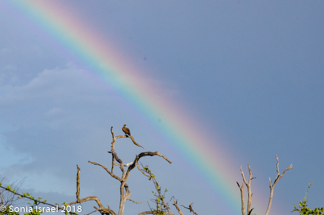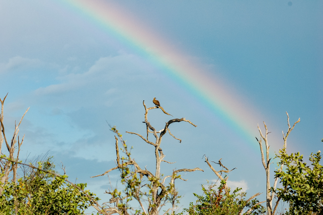 In the distance we could hear thunder and see the lightening, but the rain never came. What did come was a beautiful rainbow arching across the sky. It was as if the colors of the birds and bush wasn’t enough but we needed the colors of the rainbow to take the beauty over the top.
