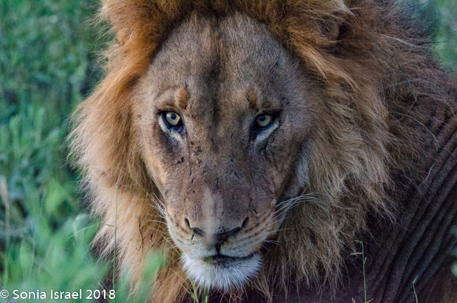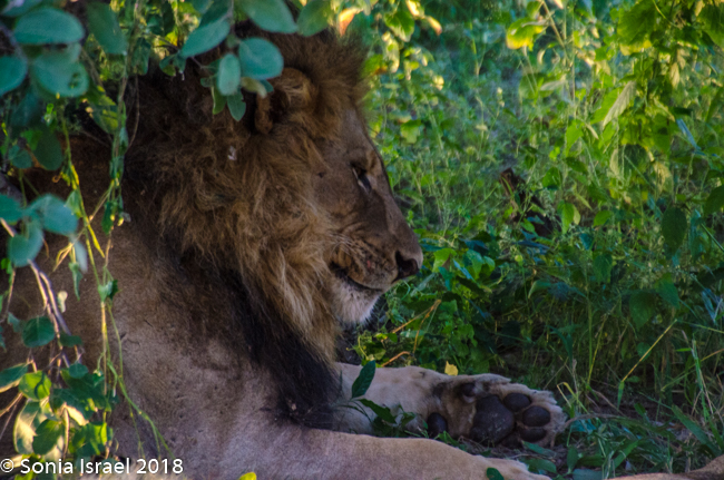 Then they would sit down again, at one point looking like book ends or like the lions at the New York Public Library. Goodman explained, as the lions kept turning their heads, that they were catching the scent of the dead hippo. Yes, not far away there was a decaying hippo who had died of old age. It was not a kill. No animal came to eat it. It was a natural death. But boy did he smell. I kept thinking we were smelling the lions, but no, it was the hippo. So the lions kept turning their heads, smelling the scent, then they would lie back down and go back to sleep.