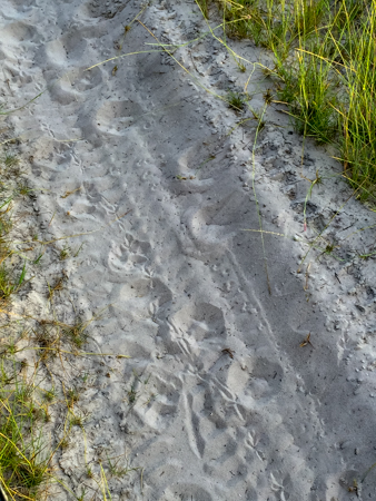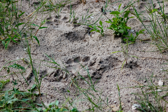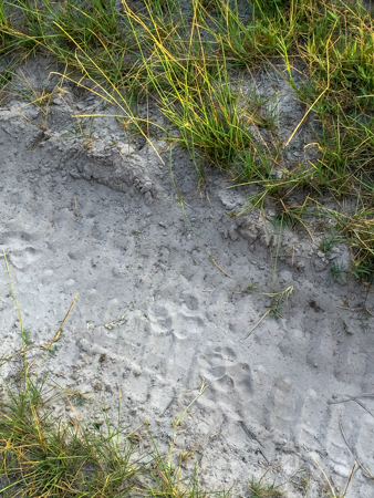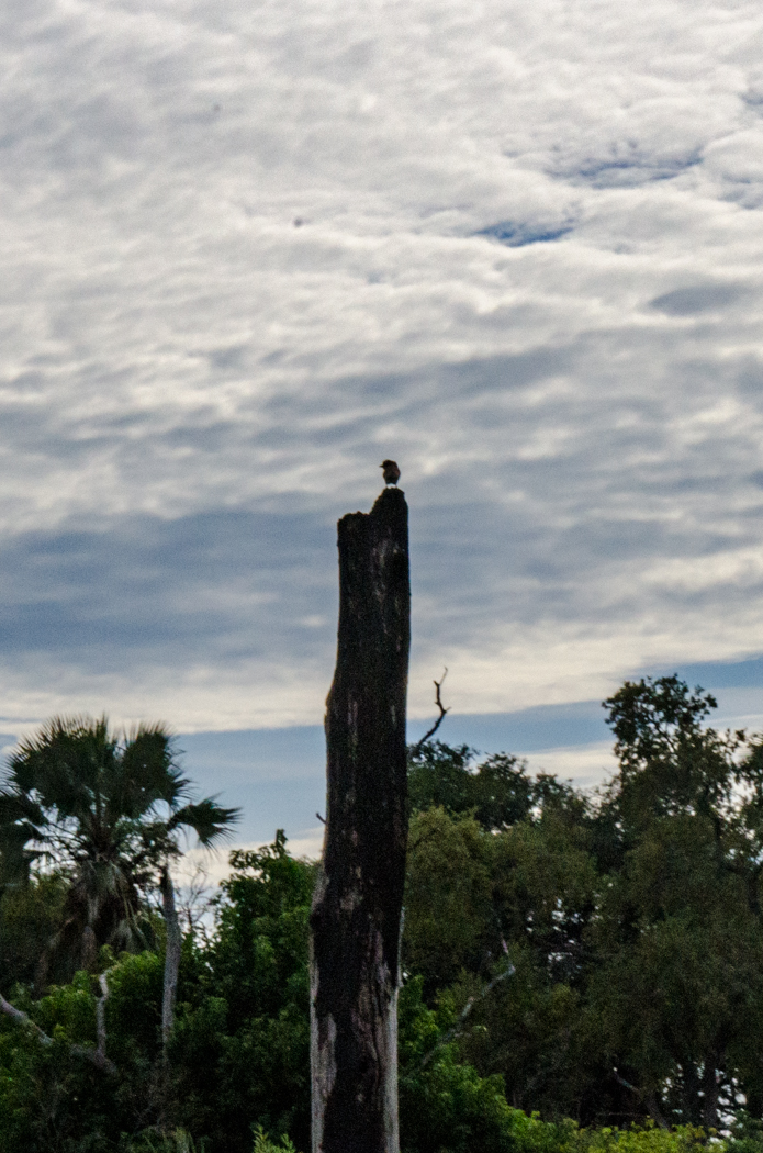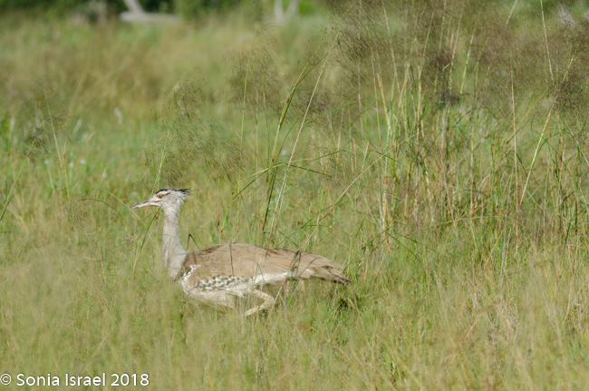 We were driving through tall grass and we could just imagine some animal slinking through it on a hunt. But it seemed almost a bit boring, in a relaxing kind of way. We would see a lone animal here and there. No large herds of animals. Mostly birds and lots of grass, bushes and trees. Many of the trees were bare, either burned from fires, or just dead. But their shapes were beautifully stark against the blue sky. Kitso would look for tracks in the sand or mud as we were driving along to help find the animals.