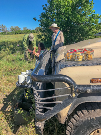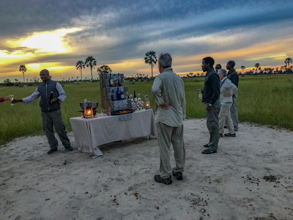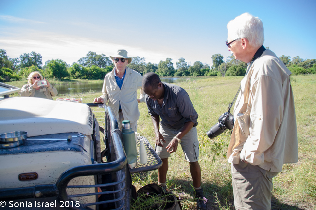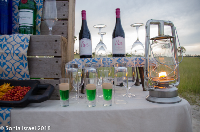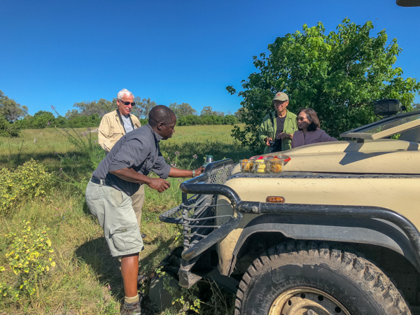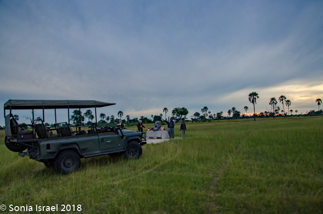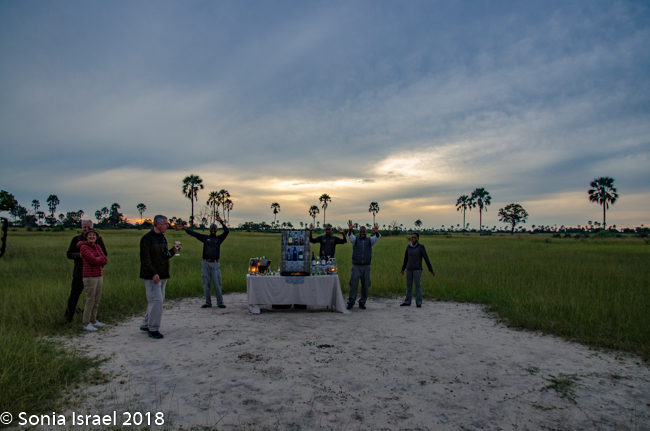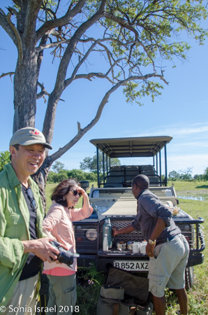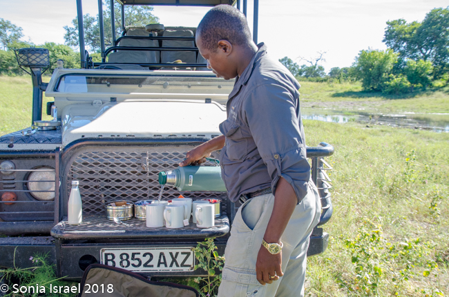 At the end of one of our drives, Goodman told us we were heading for the one place in the Linyanti that had fresh spring water. He kept raving about how beautiful it was. He went on and on about it. That should have been a clue. I imagined dipping my feet in. Or watching it surrounded by animals drinking their fill. But when we got there, the joke was on us. There was no spring water. But instead there was Megan with cold drinks and snacks for us.