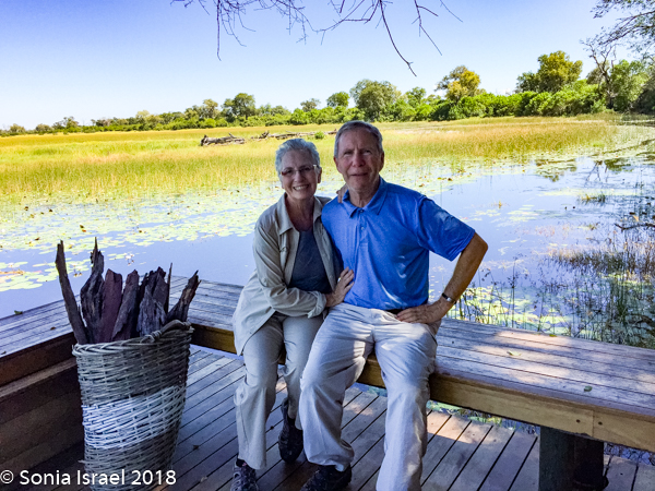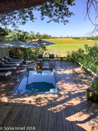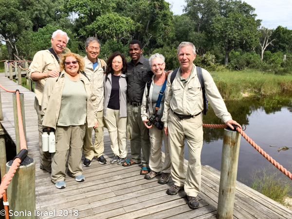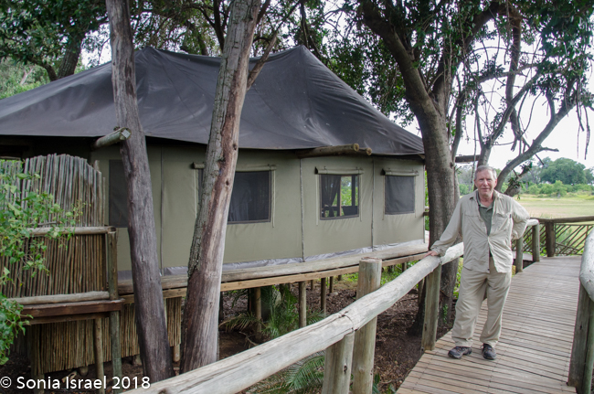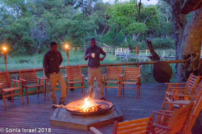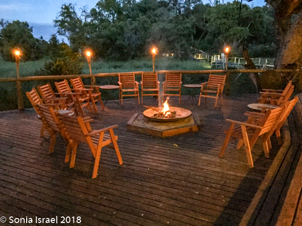 There are seven tents here, each raised off the ground. Like Xigara, there was a small pool and a large deck with a fire pit. The dining room was thatched. But the best part was the view of the Channel with all the birds and other animals. No, that wasn’t the best part. The best part was the staff. Once again we felt like we had a new set of best friends.