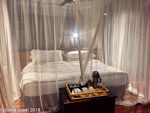 After relaxing in the lounge with drinks, and a great dinner, we were escorted to our rooms for a great night’s sleep under our mosquito nets.