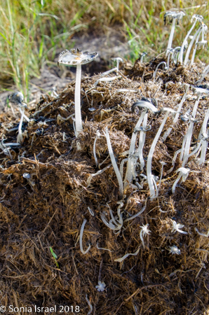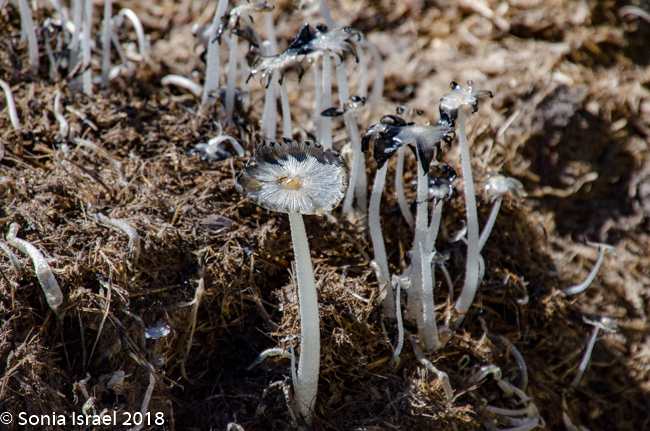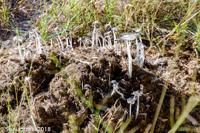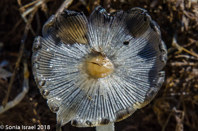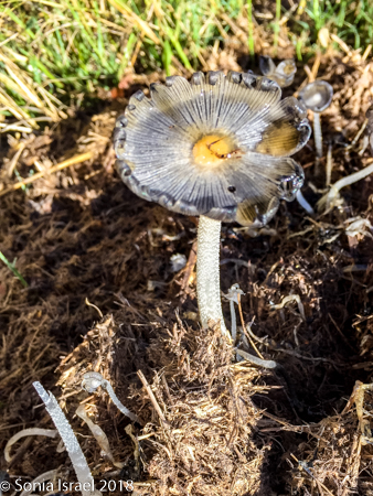 We have lots of lawyers in our family. My son is a lawyer. My daughter is a lawyer. My nephews and nieces are lawyers. But I’ve never seen a lawyer’s cap before. The lawyer’s cap is a mushroom. It is also called a lawyer’s wig, a shaggy ink cap or a shaggy mane, but it is officially the coprophilous fungi. And it is very unusual. Why? Because it grows in elephant dung. And it grows in the sunlight. And it gives out this dark black ink which is used by the locals for basket weaving. And when the animals eat it, it is released in their dung, thus spreading. All from one little mushroom. But beyond the science, it is one of the most beautiful mushrooms I’ve seen. It is almost ethereal. When it is closed, it looks like the wigs the lawyers wear in Great Britain (thus the name). But when it is open, it is almost translucent with thin stripes and a bright yellow center. Beautiful.