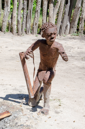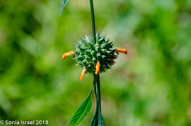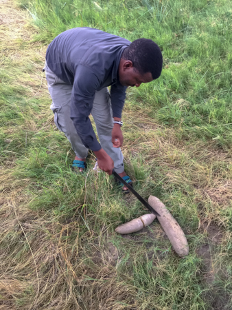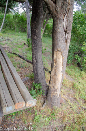 Throughout our adventures out in the bush, Goodman would grab leaves and have us smell them and then guess what they were. Sage. Basil. One was the Devil’s thorn. The Devil’s thorn, which is quite common here, is a ground creeping plant with purple, trumpet-shaped flowers. The name comes from the shape of the seeds which are oval but adorned with two sharp facing thorny seeds which are look like the horns of the devil. These vicious looking seeds stick to animals’ feet and hooves and then, as the animal walks around, the seeds are dispersed. Goodman told us he would do a magic trick with the Devil’s thorn leaf. He had us hold the leaf while he poured some water on it. We rubbed our hands together and voila, soap. The Devil’s Thorn contains saponins, a chemical that reacts with water to produce a slimy mucilage that acts as soap.
