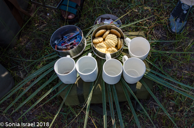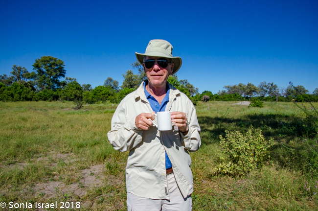 A few words about the camp and our tent. There were 9 tents and our group was in three of them. This was not like the tents you go camping in. This was a luxury tent with canvas walls on a wood frame overlooking the delta. The tents are all raised (in case of high waters). We had a sitting area and a large bath area, including both an indoor and an outdoor shower. There was coffee in the room and cookies in case we were still hungry after all the great meals.