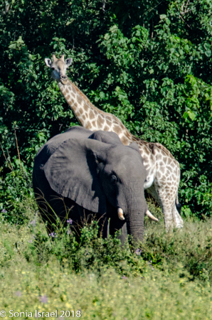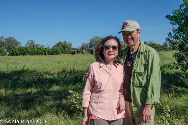 It was so peaceful, once the musth elephant left. Goodman allowed us out of the Land Rover to stretch our legs, have some tea and biscuits. We got to watch the elephants and giraffes from the ground level. And take pictures of ourselves with the animals behind us. For us a rare opportunity.