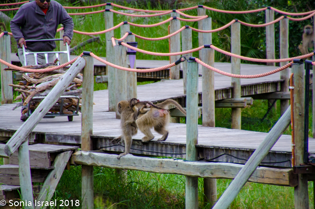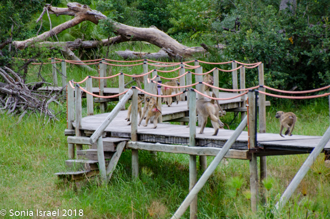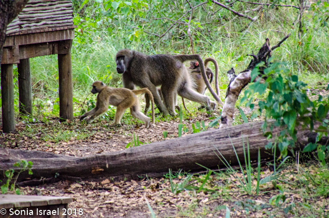 Baboons were everywhere. In Xigara, they were running all around the grounds, sitting by the pool, carrying their babies on their backs. We were warned to lock up our medicines inside our safes so the baboons would not see them. Seems they have grown to like pills. And every now and then, there would be a monkey sitting in the tree or running around.