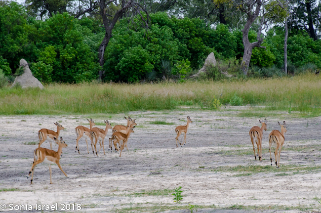 In Savuti, the first animal we saw was the impala. The impala is small and slick. Our guide Goodman was constantly asking us questions and they were not rhetorical. He expected an answer. But of course when we didn’t know, which was most of the time, he educated us. “How can you easily distinguish an impala from an antelope?” The impala has an ‘M’ on its behind. For that reason, it is nicknamed the McDonald’s impala.