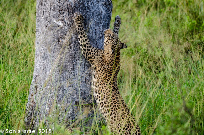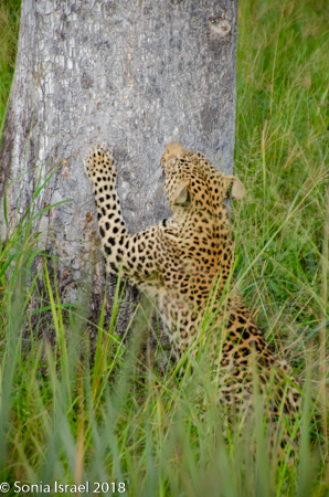 As this was our last morning here, our goal was to find a leopard. We had seen elephants and giraffes, wild dogs, warthogs, zebras and lots of different antelopes and birds. We had seen a lioness. But no leopard.