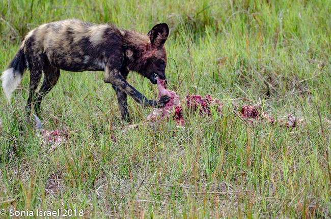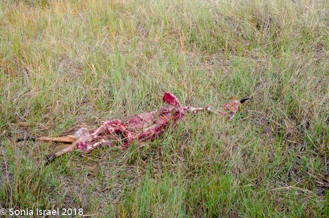 So we kept driving looking for a leopard. We drove through a grove of trees and we all kept looking up to see if there might be a leopard sleeping on a tree branch. We saw the painted dogs again but this time they were eating something, a carcass of a red lechwe (the closest we got to a kill). The circle of life.