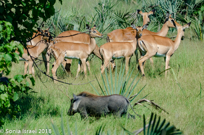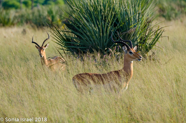 There was one impala we kept seeing over and over again. We could tell it was the same one as he had only one horn. Imagine the fight he won to actually lose his horn! We called him the unicorn. At one point we saw him protecting his herd of females by chasing a young male who was trying to intrude.