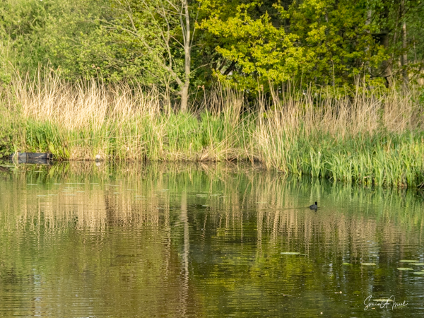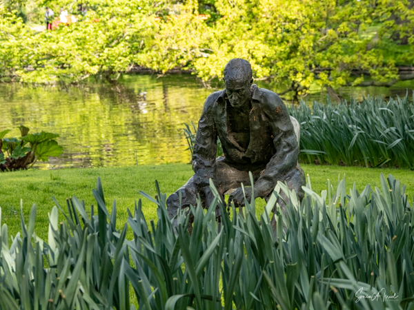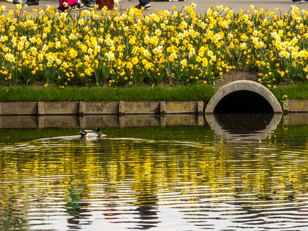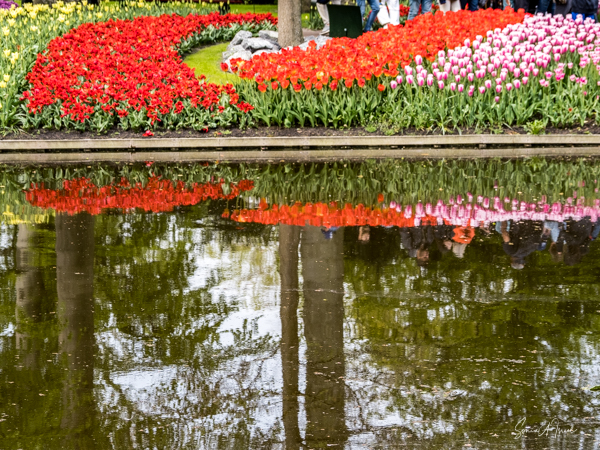 Along with the flowers there were also pieces of art, sculptures and fountains, and of course birds. But what kept catching my eye was the reflections in the ponds and lakes. Bursts of color staring up at their mirror image.