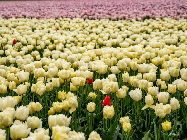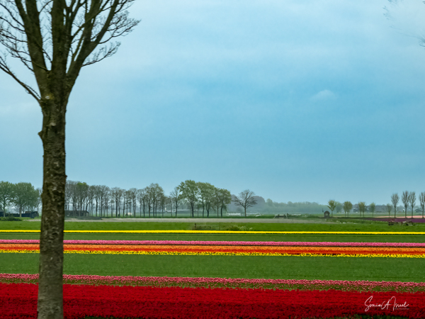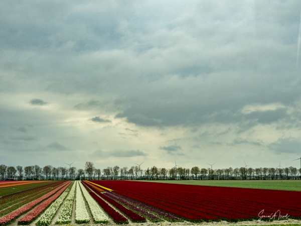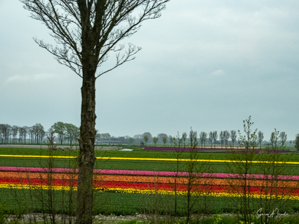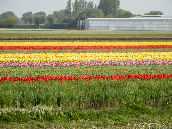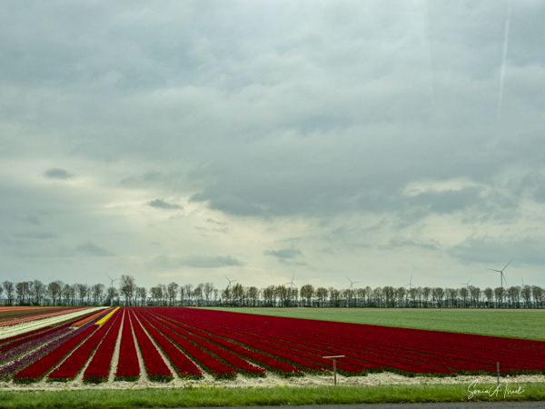 And then later, as we drove around the Bollenstreek area, we passed the most colorful, striped landscape. I know it sounds trite, but it really did look like carpets of color in rainbow stripes. And depending on the angle of view, the shapes of the rows themselves made the most interesting patterns and designs.