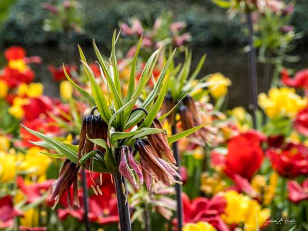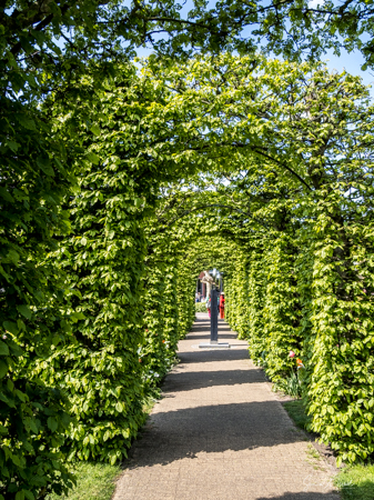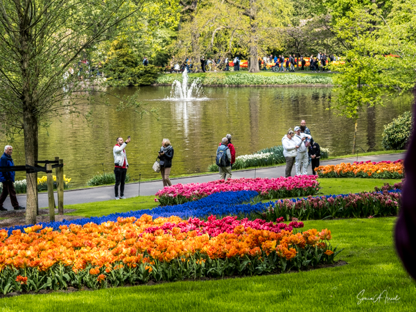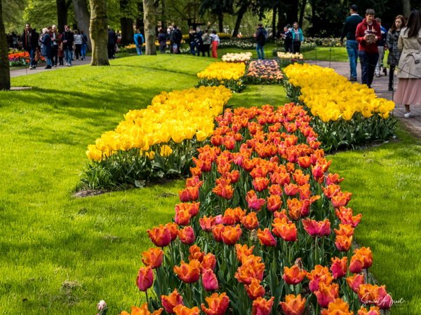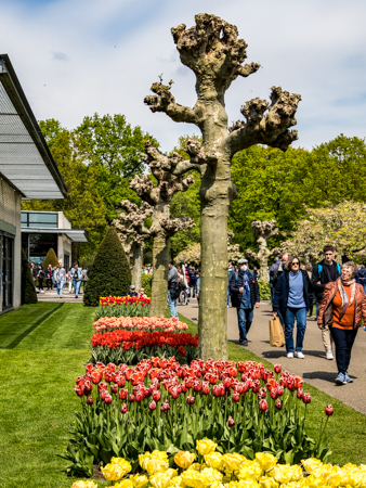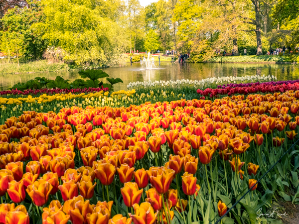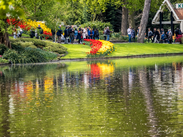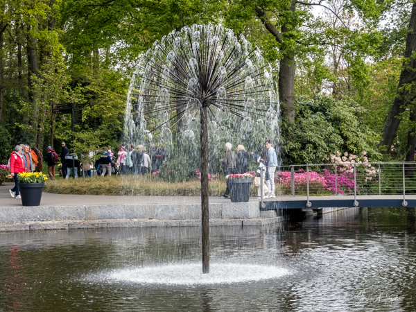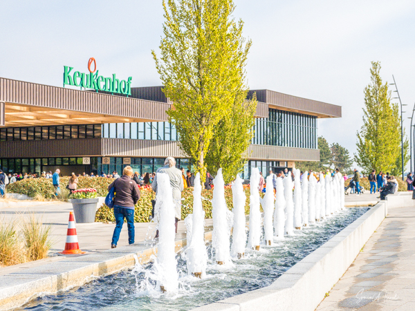 We walked over to the entrance where of course there were rows of tulips and water fountains. Everything at Kuekenhof is in the tulip motif, even the front gates.