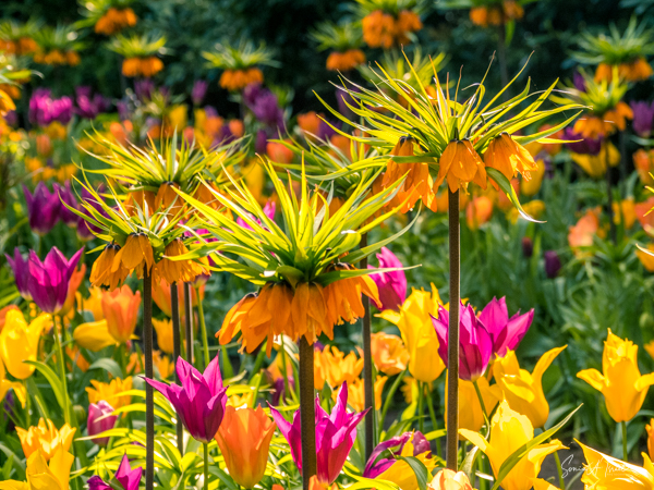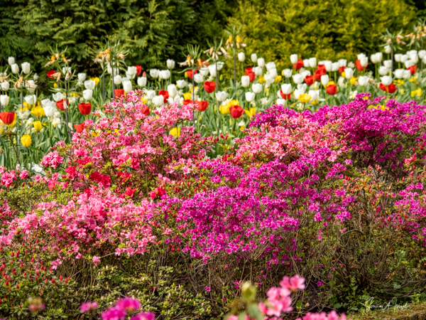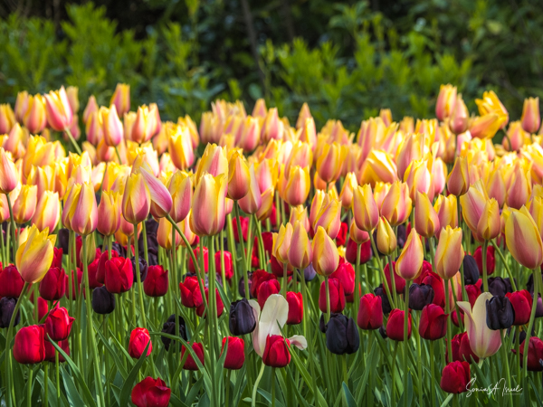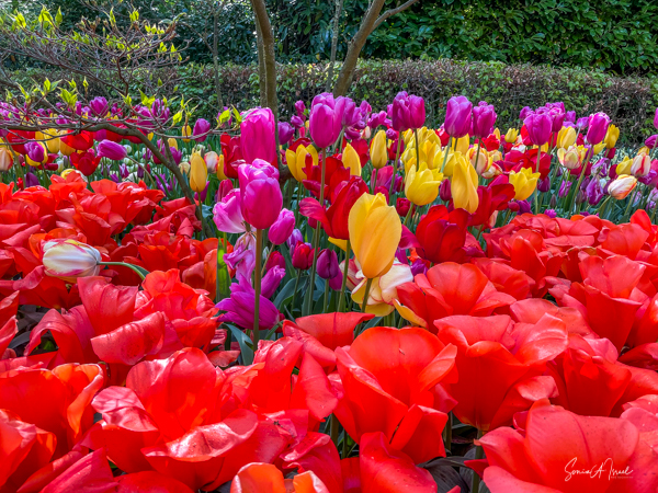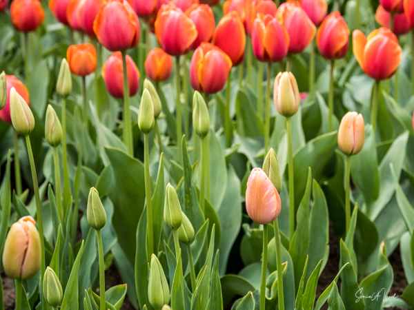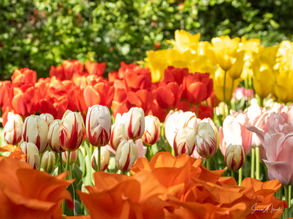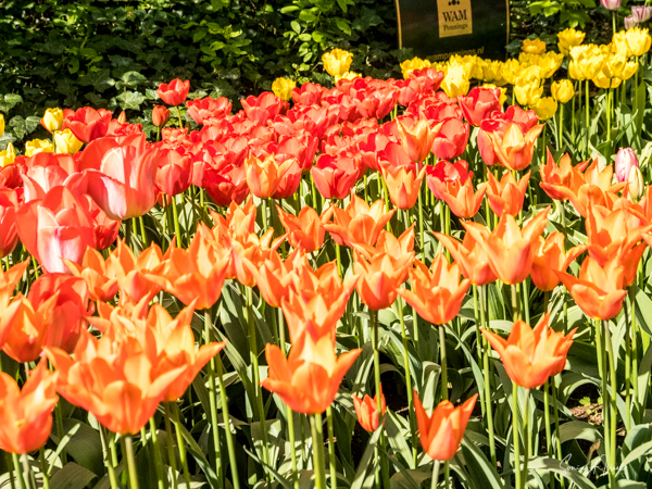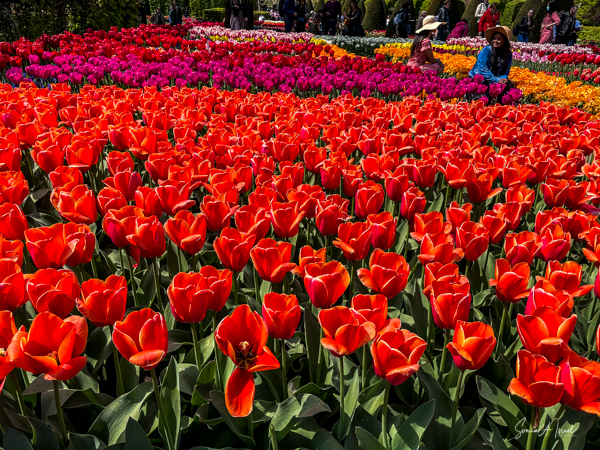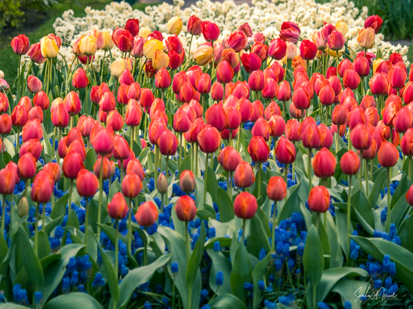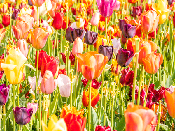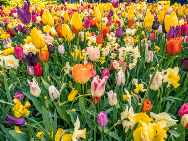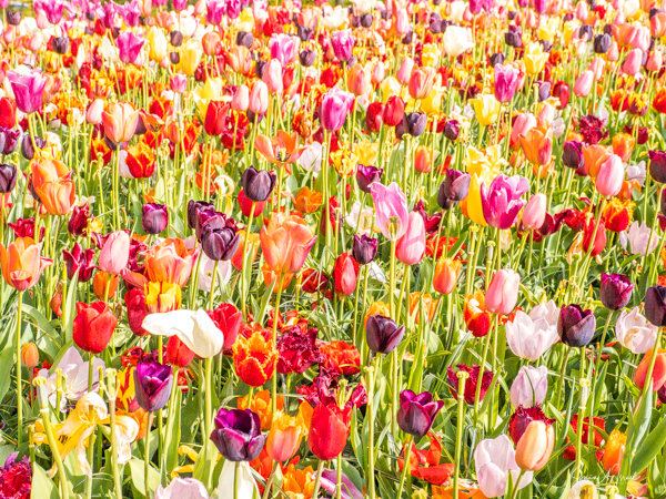 We walked in, so excited and the first sight to hit our eyes was a large mound of tulips in every possible color, all mixed in together. I just stood there a moment to take it all in. And then I started walking up and down the paths, trying to take in the cacophony of colors.