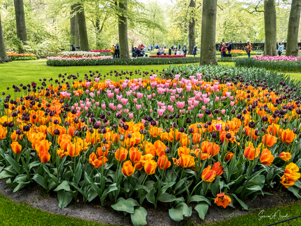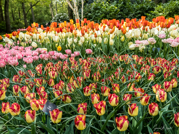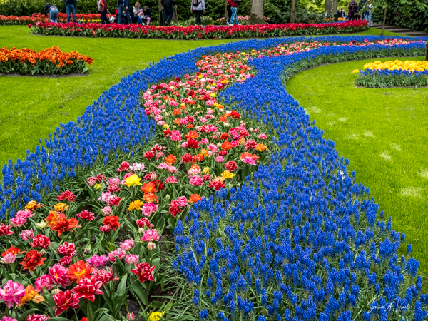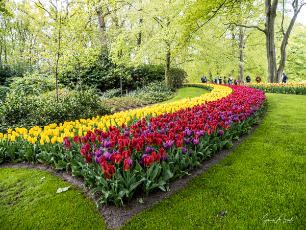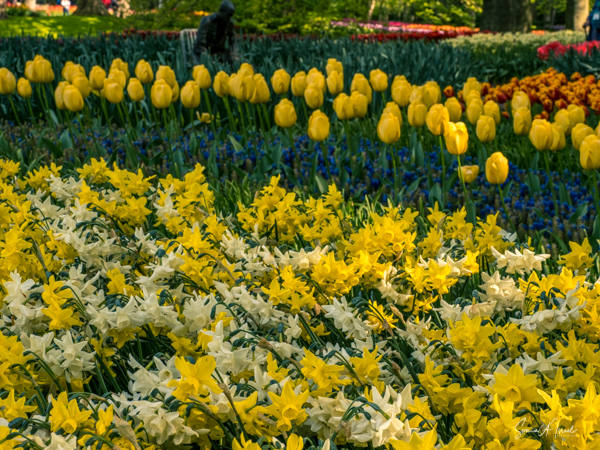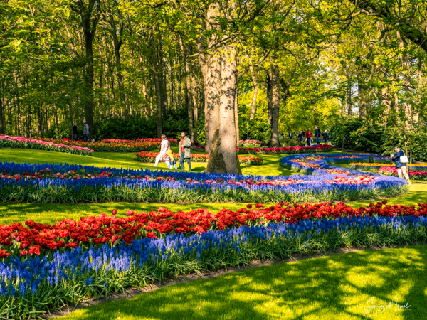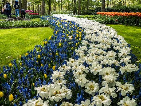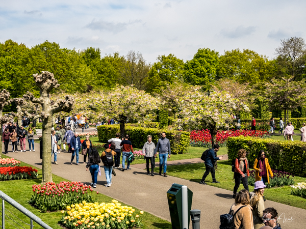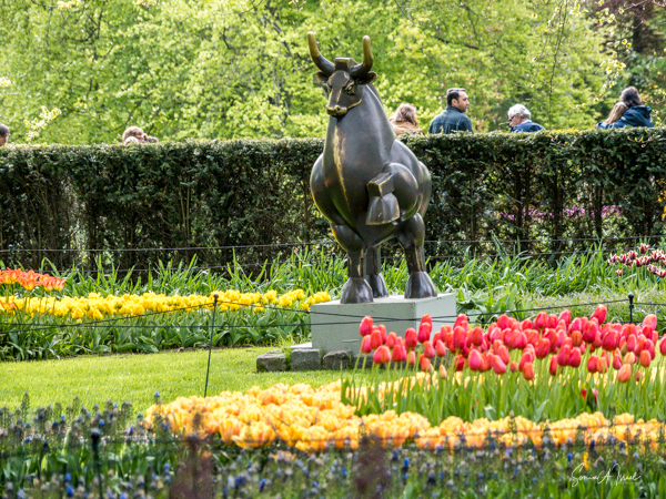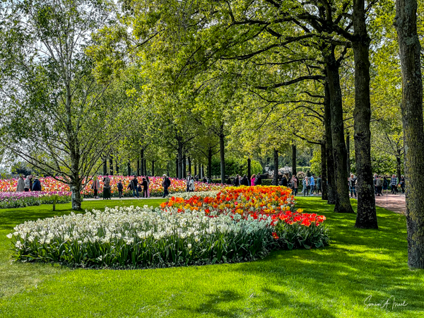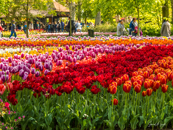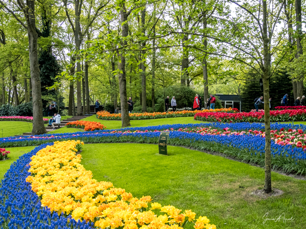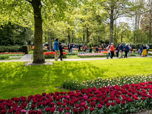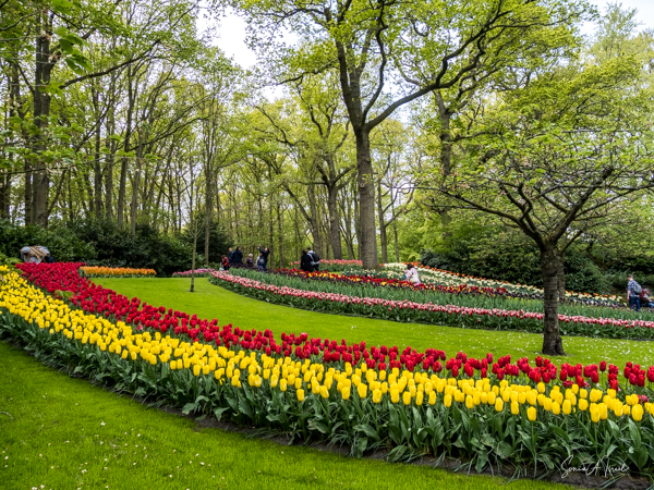 On our last day of the trip, we finally got to go to Keukenhof. This was the “raison d’etre” of the trip. Keukenhof, also known as the Garden of Europe, is one of the world’s largest flower gardens, situated in Lisse. It covers close to 80 acres which are planted annually with about 7 million flower bulbs. The bulbs are planted over time so no matter when you visit, there are always flowers blooming. While the tulip is the main attraction, there are also hyacinths, daffodils, lilies, roses, carnations and irises. The bulbs are all donated by over 100 tulip farmers.