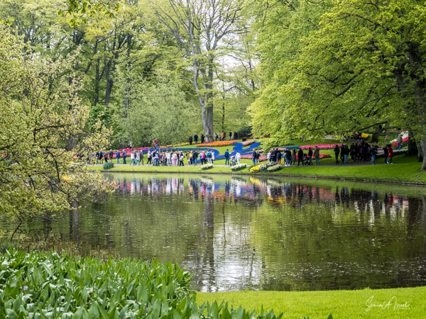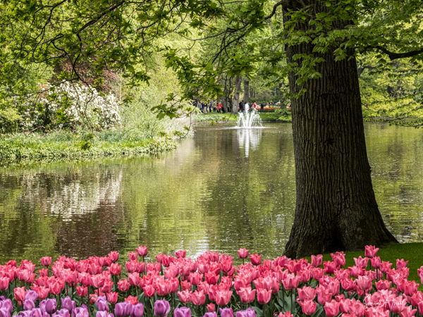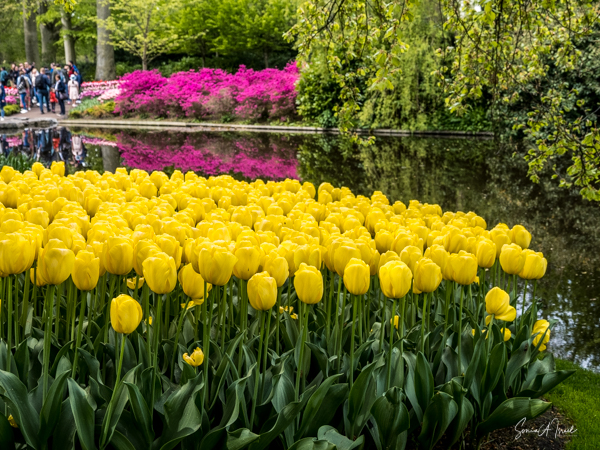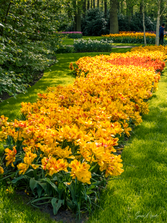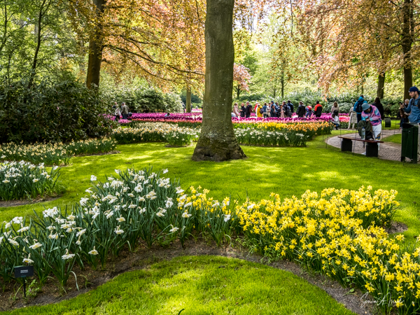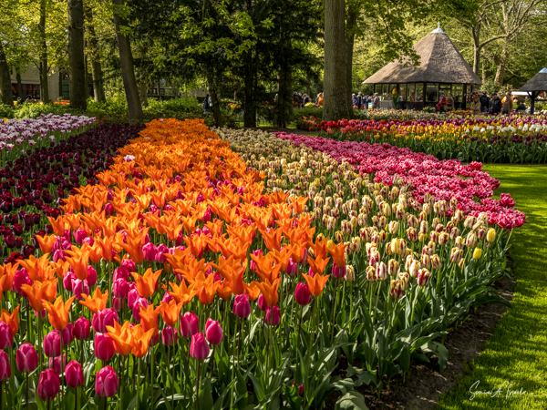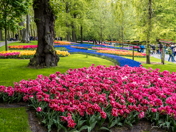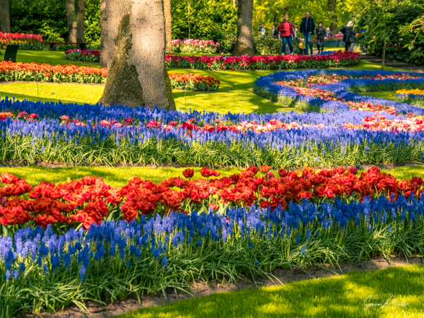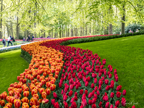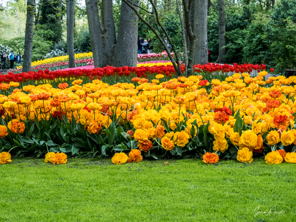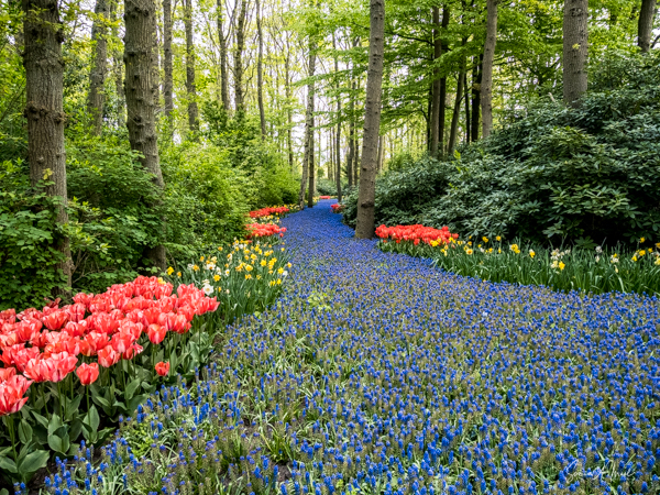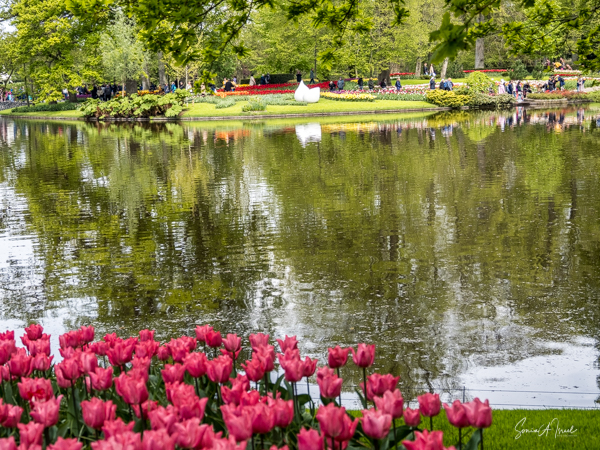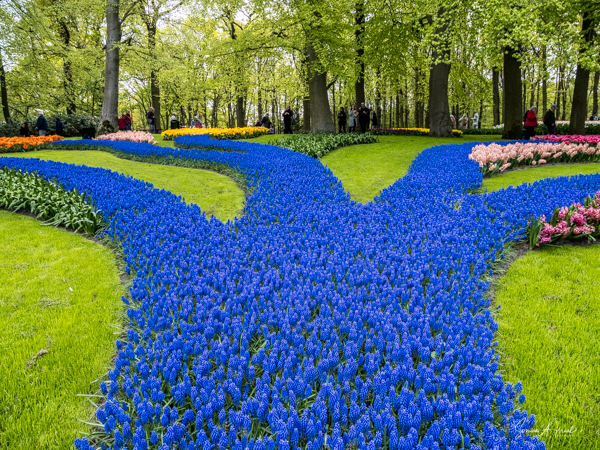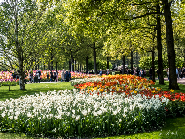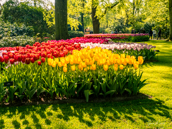 On our last day of the trip, we finally got to go to Keukenhof. This was the “raison d’etre” of the trip. Keukenhof, also known as the Garden of Europe, is one of the world’s largest flower gardens, situated in Lisse. It covers close to 80 acres which are planted annually with about 7 million flower bulbs. The bulbs are planted over time so no matter when you visit, there are always flowers blooming. While the tulip is the main attraction, there are also hyacinths, daffodils, lilies, roses, carnations and irises. The bulbs are all donated by over 100 tulip farmers.