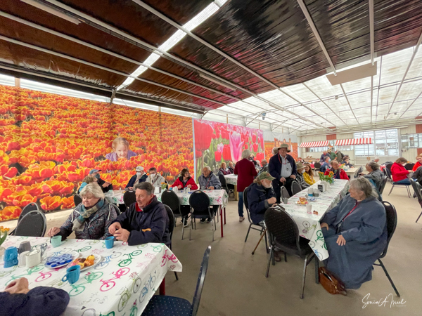 We got to visit a tulip farm, Kwekerij Siem Munster Farm, and I must say it was fascinating. The visit started with the “Farmer’s Wife” as she was constantly called. She even called herself the “Farmer’s Wife.” We all sat in a large warehouse where we were served tea and cookies while she showed us a slide show describing how the tulips are grown and cultivated. Everything of course was in tulips. Even the bathroom was fancy and looked like Delft china. This is another way for the farm to make ends meet. They hire many workers, now primarily from Poland, and have nice housing for them.