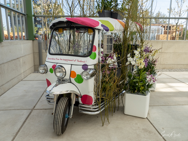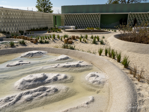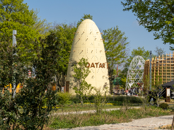 We visited some of the different country pavilions which were displaying their culture, plants, flowers and local innovations. The display from the UAE was particularly interesting as it showed the progression of the desert into desalinated water for consumption and for growing plants. The Qatar exhibit, with the desert environment, was also very interesting, with Bedouin tents and three large cones, similar to the ones found in Qatar. There were displays from Thailand, Germany, China, India, Suriname, Sudan. Some were not yet open and some had very little in them.