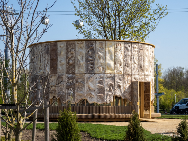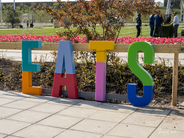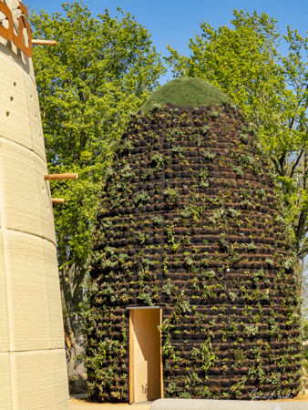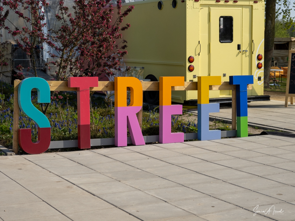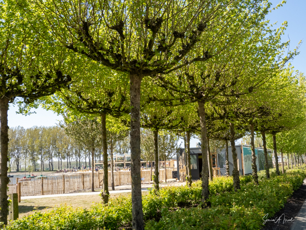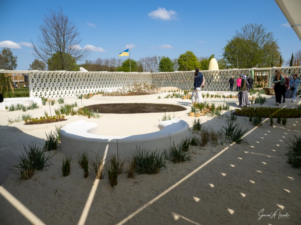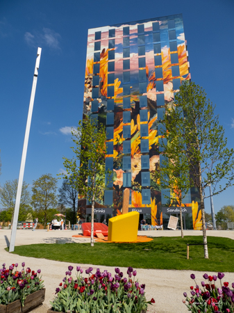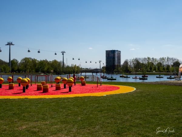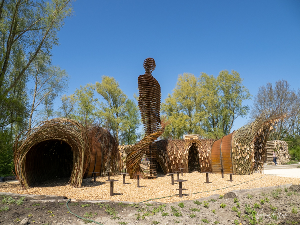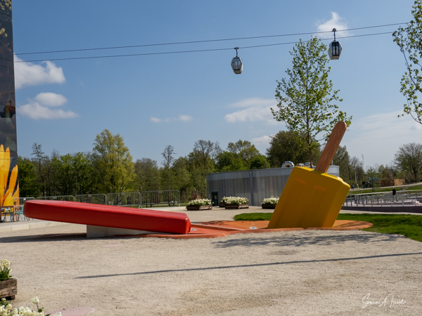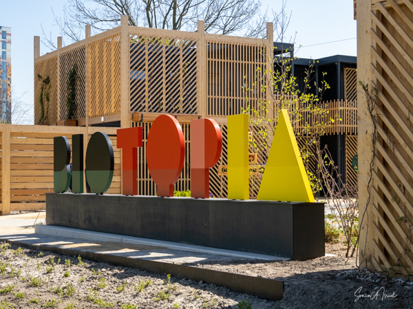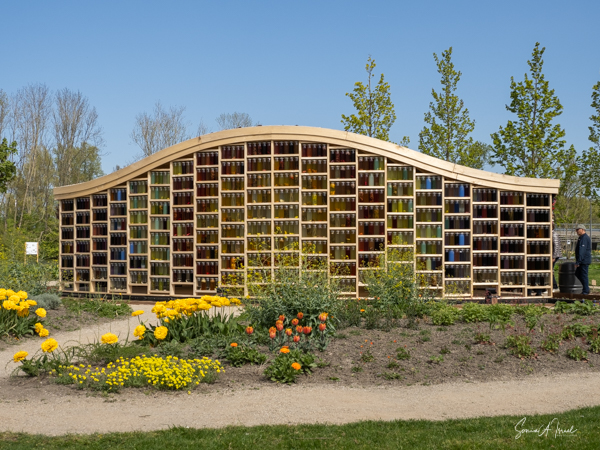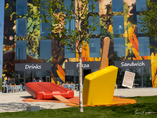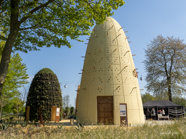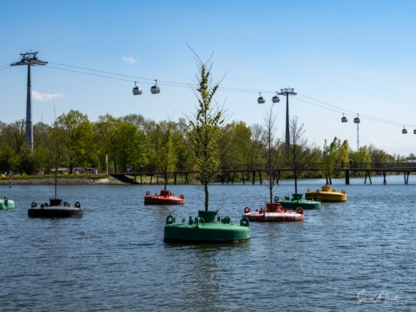 As we continued walking along the lake, my eye was caught by what looked like large floats, in all different colors, with a tree in the center of each. This was called the Bobbing Forest. There were in fact 20 recycled sea buoys from the North Sea filled with 20 Dutch elms. The floating trees provide additional greening, compensation of CO2 and reduction of particulate matter, emphasizing the importance of climate adaptation, innovation, health and greenery. These were created to save the trees in case of severe flooding. As the wind blew, the floats drifted along the water. Right near there was one of many playgrounds as the whole Floriade is very child-friendly. There were playgrounds everywhere, and while today there were not many children, one could imagine that on the weekends the sounds of the kids running around would fill the air. That’s sustainability too.
