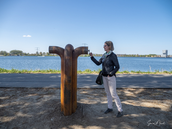 We crossed one of the two bridges over to the Green Island. The bridge we chose was made from recycled material from a bridge in another part of Holland, which was getting old and needing to be replaced. I had never heard of recycling a bridge before, but it made perfect sense. Sustainability.