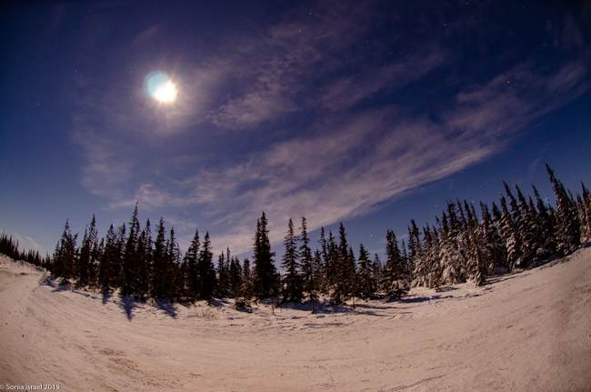 The moon was full. The trees were covered in snow. All added to the beauty.