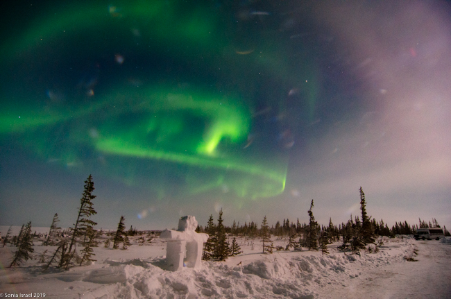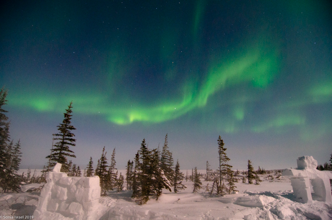 Why Churchill?  Well, so many of our friends had traveled to Norway or Iceland and never got to see the lights. Churchill has one of the highest probabilities of seeing them. Churchill has over 300 nights a year of aurora activity due to its northern latitude and because it sits in the auroral oval (see below to learn what that is). The skies tend to be clear between January and March because moisture is trapped on the frozen Hudson Bay.  Less moisture means it is colder and clearer. So Churchill it was.