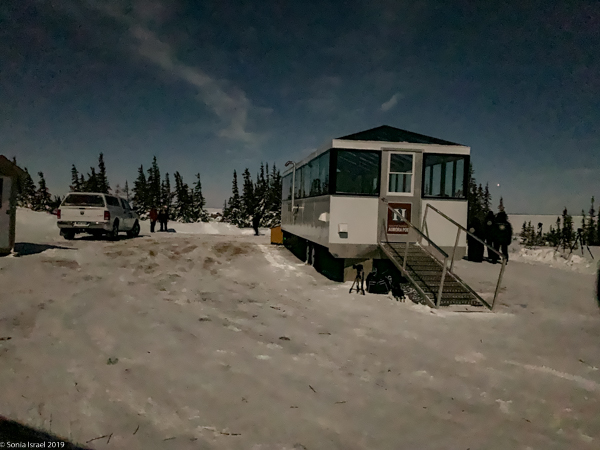 We were picked up at 930 for the 10-minute drive to the Aurora pod. Why 930pm? The best window for seeing the lights is between 10:00pm-2:00am, known as the magnetic midnight. We were traveling with Natural Habitat and they are the only ones that have the Aurora Pod. As far as I was concerned, this was the only way to wait to see the lights