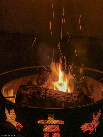 And we waited. And we waited. And as happened on two other nights, we heard someone yell – Lights! The sky was talking to us again, displaying for us, entertaining us. I walked around the grounds. Behind trees. Near the tepee. And I watched the green lights transform the sky. It was bittersweet as we knew this was our last night.