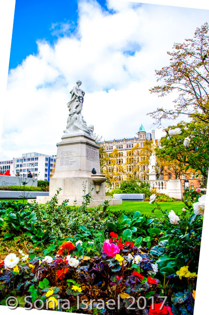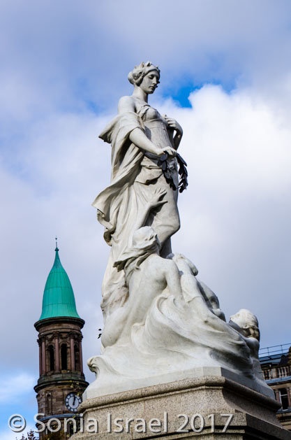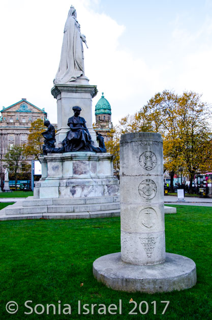 City Hall is surrounded by a plaza and gardens. With lots of statues. There is a memorial to those lost in the wars. There is a granite column dedicated to the American Expeditionary Force, many of whom were based in Belfast prior to D-Day and marks the first arrival of US troops into Belfast in 1942. In 1995, President Bill Clinton rededicated the memorial. And of course the statue of Queen Victoria.