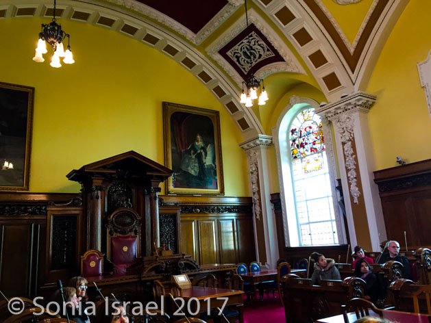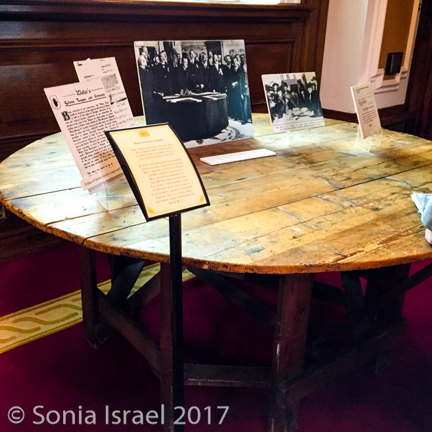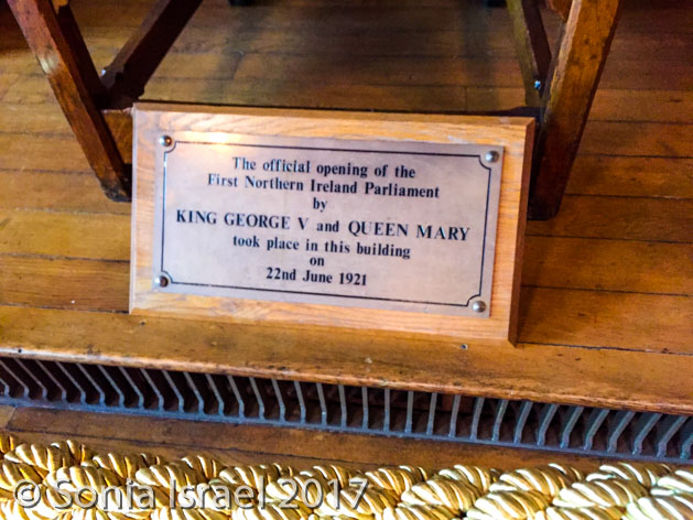 I had to give it back and then we went into the hall where the ministers meet and got to sit in the Prime Ministers Chair for a picture. There was a glass cabinet with gifts from around the world that included a menorah and a silver covered Tanach (small book with the words of Torah in it). And there was the very table used for the signing of the Ulster Covenant, also known as Ulster’s Solemn League and Covenant in 1912, in protest of the Third Home Rule Bill which tried to unite Ireland under British home rule. It was signed by just under half a million men and women. Half a million!