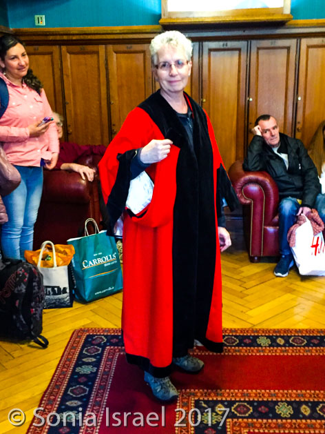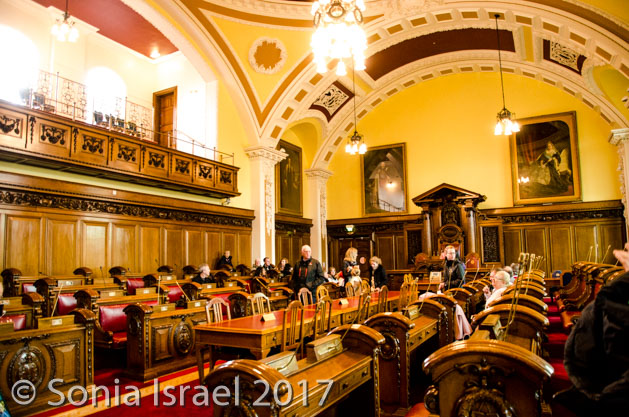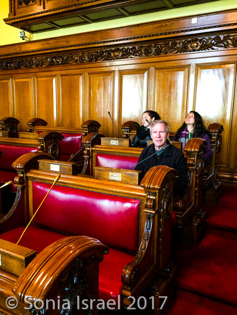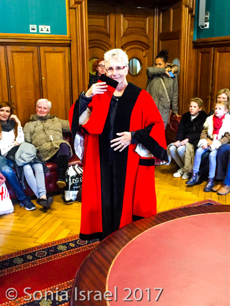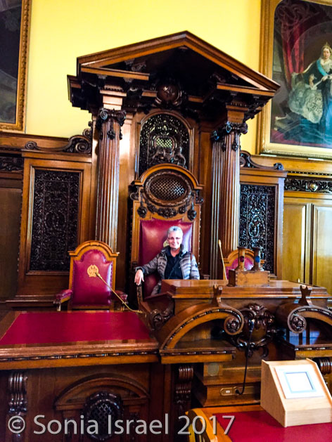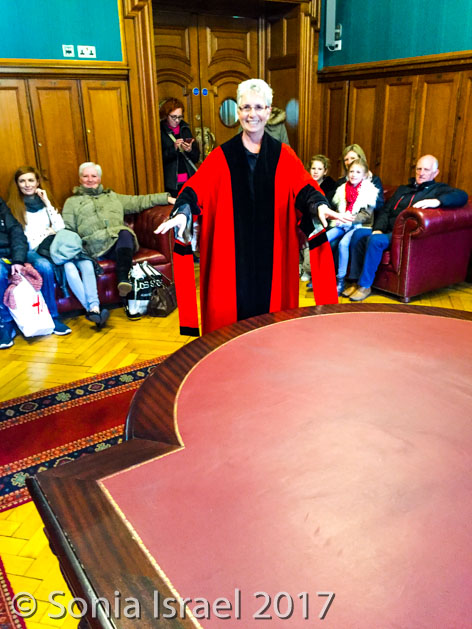 We went into the anteroom where the ministers don their robes before going into the chambers. Our tour guide asked for a volunteer, and not even knowing what I was volunteering for, I raised my hand. I got to wear one of the robes that the elected ministers wear!
