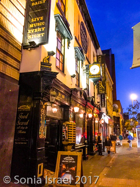 The Robinson Pub is one of the oldest pubs in Belfast, having been established in 1895. There is a back room called Fibbers McGee with music, but the music wasn’t starting until 10pm, past my bedtime.