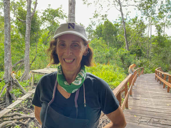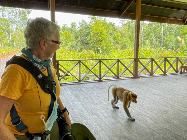 We stepped off the boat, walked across the sandy beach, cleaned off our shoes and went walking along the trails exploring the rain forest here, the jungle streams, the waterfalls. We were looking for all sorts of wildlife and we found them. We found snakes and bugs and lizards and silver leaf monkeys, and so many birds. But I really wanted to see a proboscis monkey.
