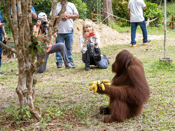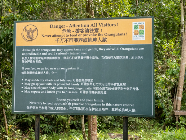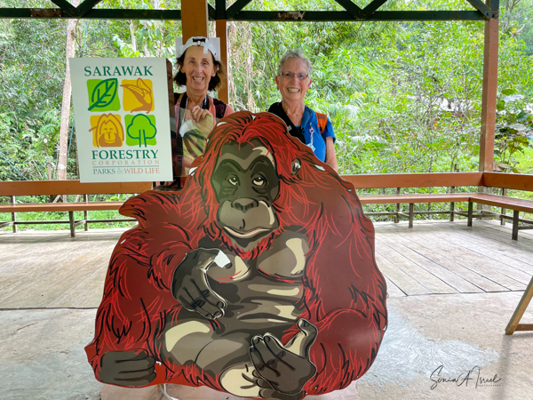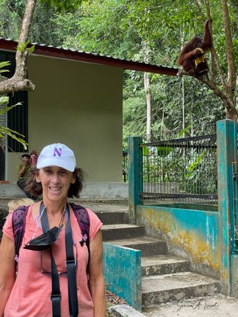 On our second day in Kuching (please see the post on Kuching), we were loaded onto a bus and headed 12 miles to the Semenggoh Nature Reserve for our first encounter with orangutans. The Semenggoh Nature Reserve is a natural habitat established in 1975 as a sanctuary for orangutans who were injured, orphaned or had been (illegal) pets, most between the ages of 1 and 5 years old. The orangutans living here roam the forest and are free to go wherever they want but have been trained to come back to the center during the morning and afternoon feeding times where they get a free meal from the caregivers. Nevertheless, during the forest fruiting season, they don’t always come back. Over the years many have been released and now are part of a semi-wild colony in the reserve.