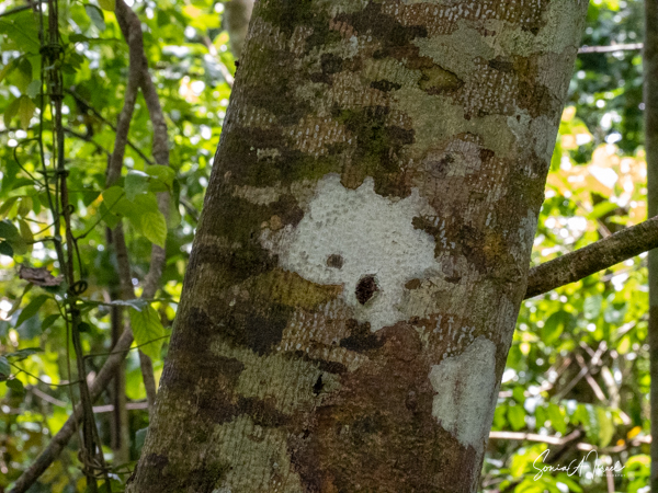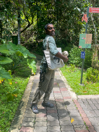 As we walked along the boardwalk, through the forest, Harsha suddenly called out, “Look, a pygmy squirrel!” We looked at the tree and there was something that looked like a mouse. The pygmy squirrel lives in the tall forests of Borneo and is mostly seen on the trunks of trees. It is called a bark gleaner as it eats the bark. It is a tiny, tiny, with olive brown fur on the back of its neck and on the top of its head, with a brown/orange tail. Weighing about half an ounce, it is the smallest diurnal squirrel in the world. And it is only found here in Sabah, Borneo! How lucky were we to see this rare animal?!